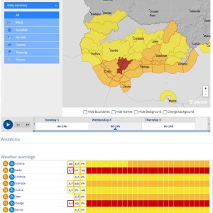 – Storm Leonardo has placed the Axarquía and much of Andalucía under orange warning for Wednesday 4 February, owing to exceptionally heavy and persistent rainfall, with AEMET forecasting up to 90 litres per square metre in 12 hours and more than 120 locally in 24 hours.