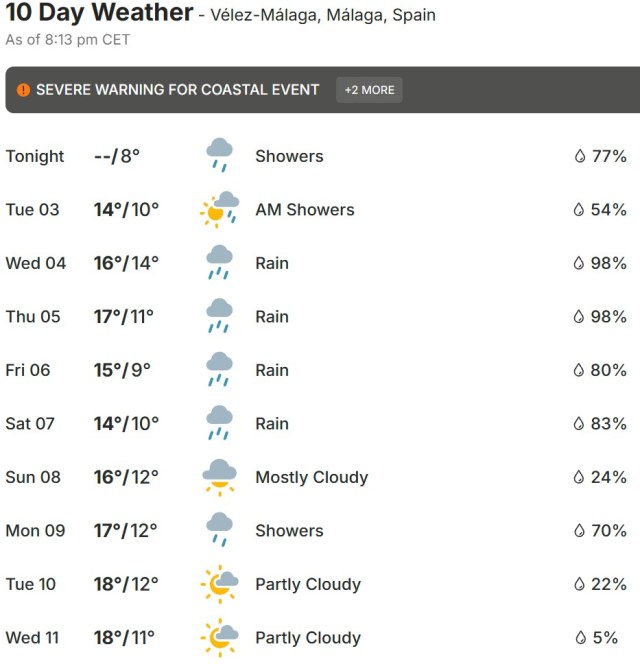 Local Weather: https://www.accuweather.com/en/es/torre-del-mar/306652/weather-forecast/306652