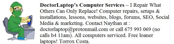 Happy Computing! DoctorLaptop’s Computer Services. I repair what others can only replace! doctorlaptop@protonmail.com