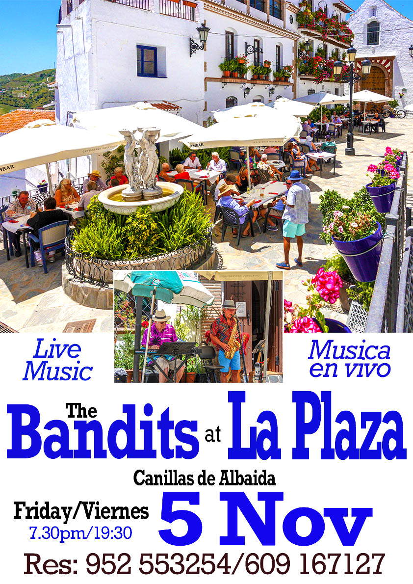 Bandits in Canillas: The Bandits are playing at Restaurante La Posada, La Plaza, Canillas de Albaida this coming Friday 5th November, bring your sparklers! Early start and finish 7.30 – 10.30.
