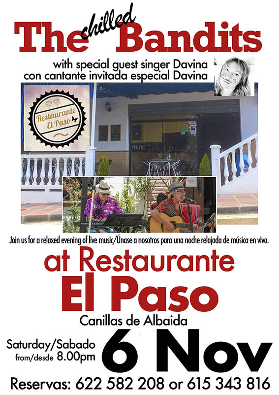 The Chilled Bandits: We will be playing a relaxed set of songs at Restaurante El Paso this coming Saturday November 6th.