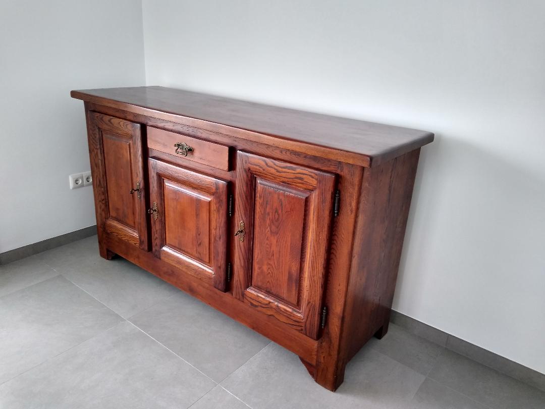 For Sale: Heavy, solid oak sideboard, with lockable cupboards and one central drawer. Originally purchased from Muebles Piramides, Caleta de Velez. Excellent condition. Measurements – Width 54cm, length 168cm, height 95cm. 300 euros