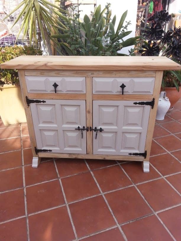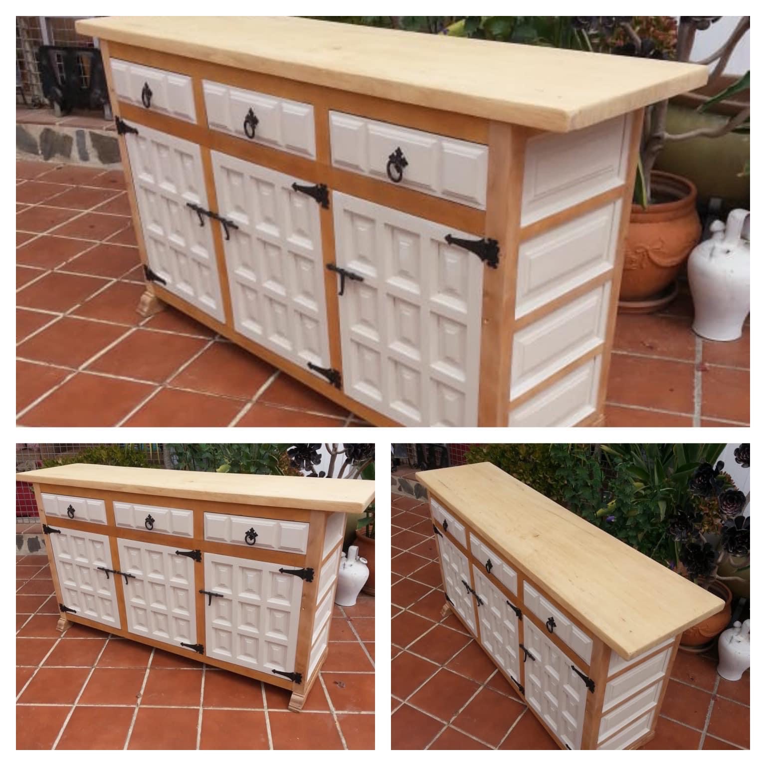 -Castilian sideboard solid natural wood with chalk paint panels and drawers waxed Measurements 150 x 39.50 x 78cms Price 250€