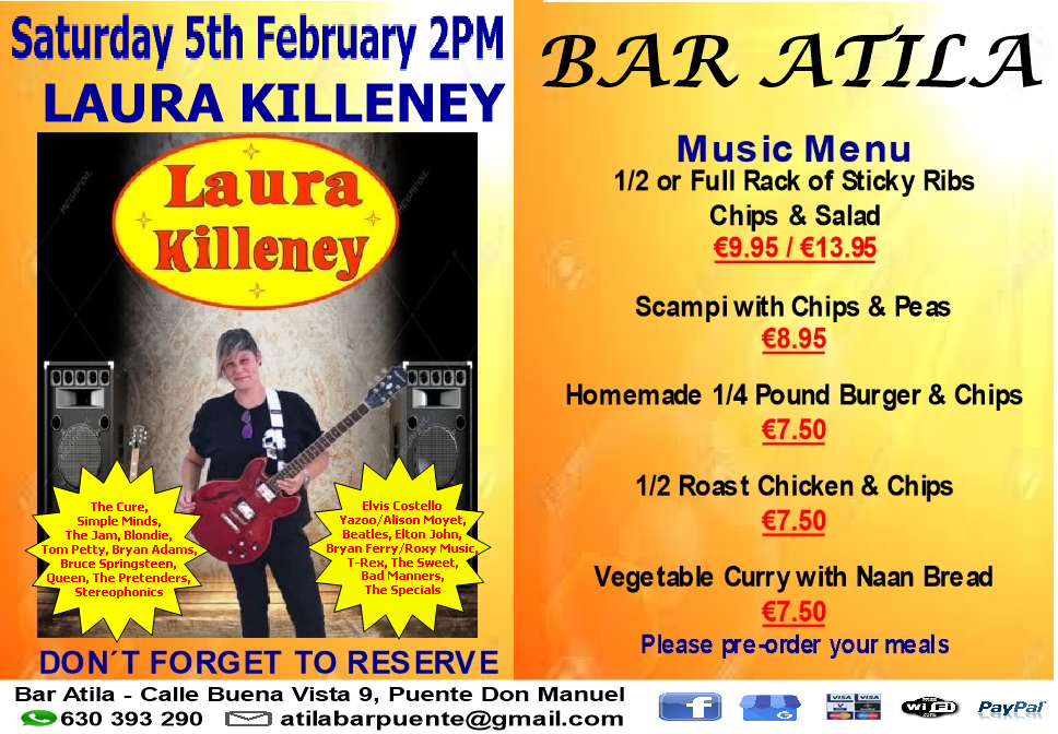 Laura Killeney, Afternoon Gig at Bar Atila: Saturday 5th February, 2pm