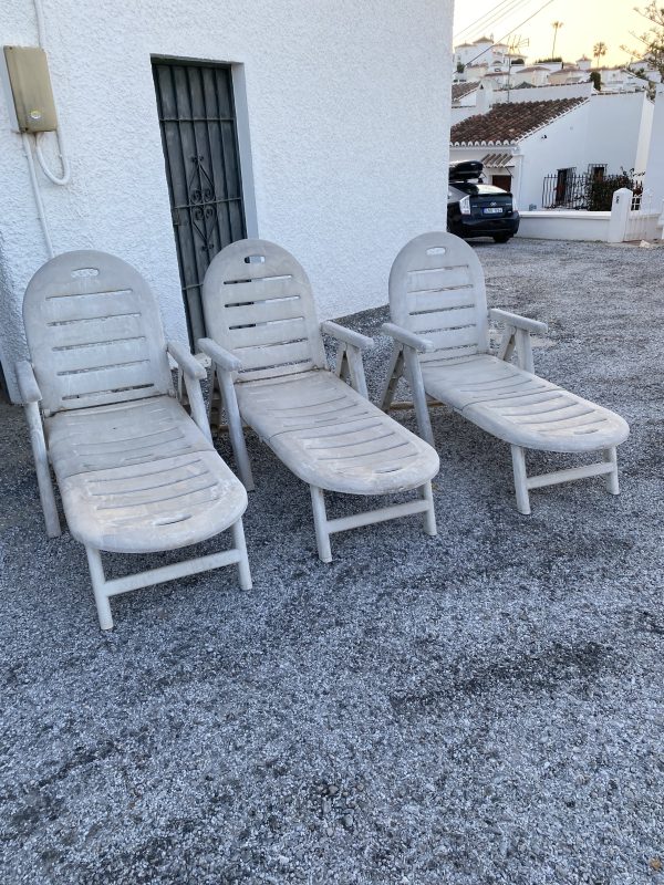 -3 folding plastic sunbeds with adjustable headrests (need a good clean not broken) Price 25€ for the 3