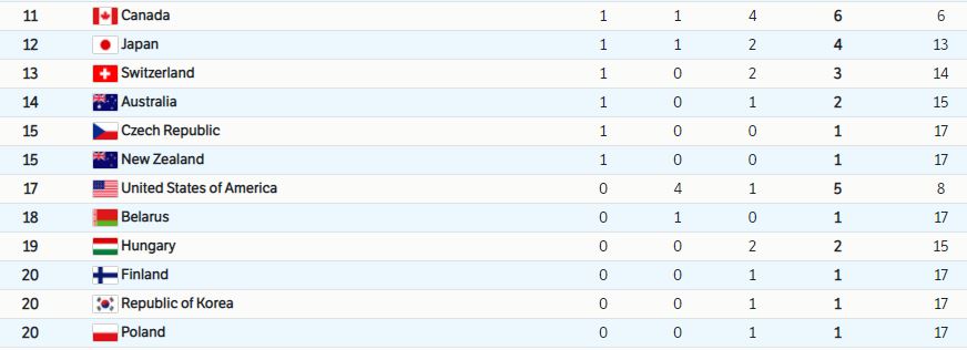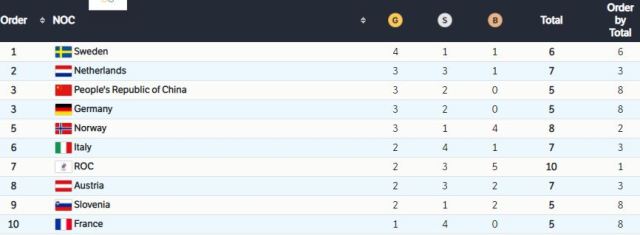 Olympic Medal Table, Tues., Feb 8th 2022: Click/tap the pic to enlarge. See Beijing Winter Olympics 2022 info site, has full schedules & scores: https://olympics.com/en/