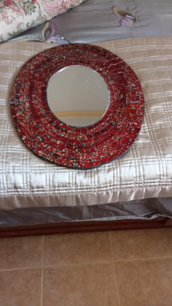 -Red mosaic tiled mirror, 7 euro
