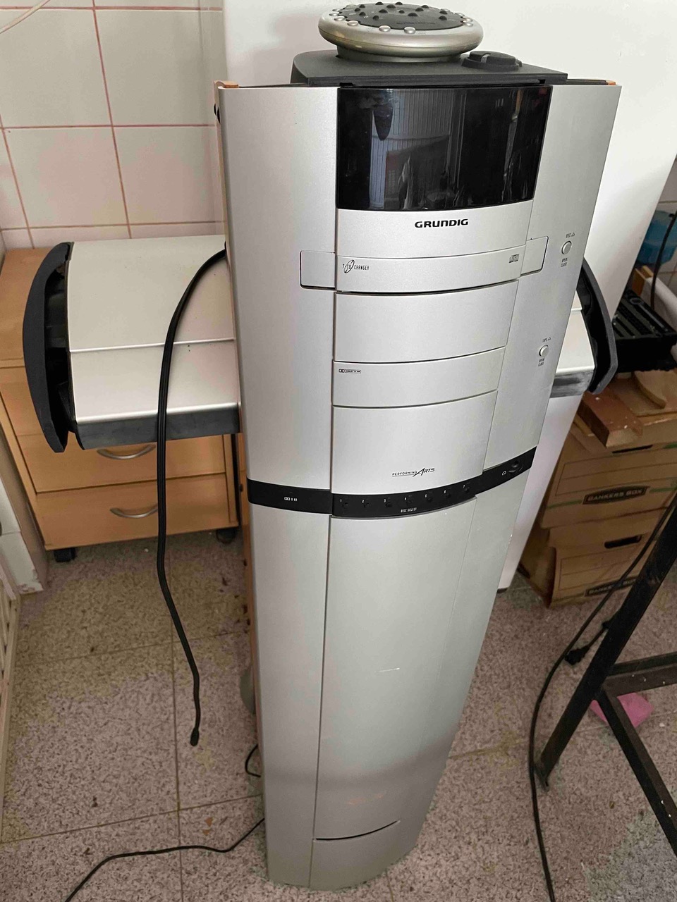 -Standalone Grundig Sound System with remote – superb sound. (Radio, Cassette, Multi CD Player). CD Player does not eject, thus the low price. 20€