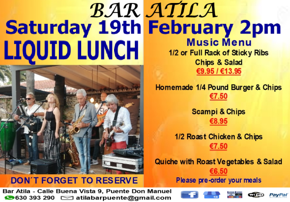 Bar Atila: Afternoon Gig with Liquid Lunch + Meal Deals