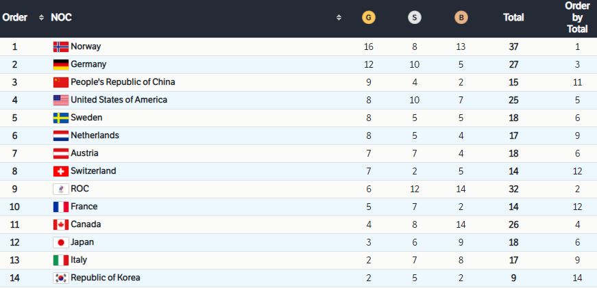 Olympic Medal Table, Final Results: Click/tap the pic to enlarge. See Beijing Winter Olympics 2022 info site, has full schedules & scores: https://olympics.com/en/