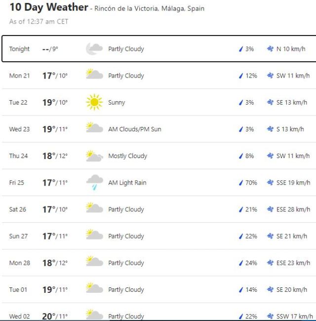 Local Weather: https://www.accuweather.com/en/es/torre-del-mar/306652/weather-forecast/306652