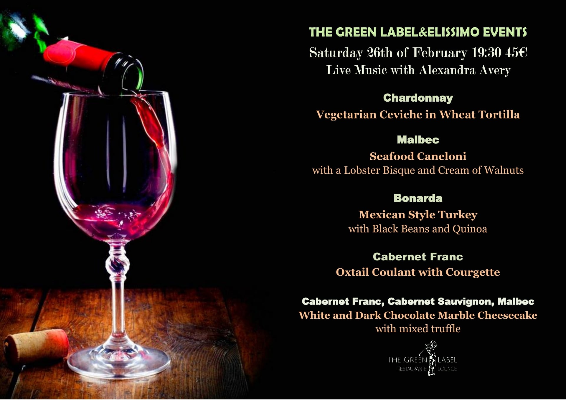 The Green Label Wine Tasting Event: Sat 26Feb 7:30pm