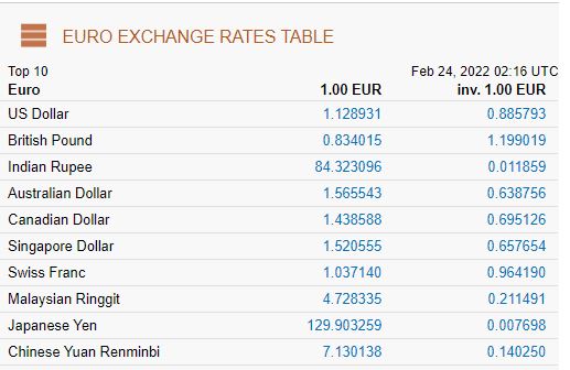 Exchange quotes (x-rates.com)