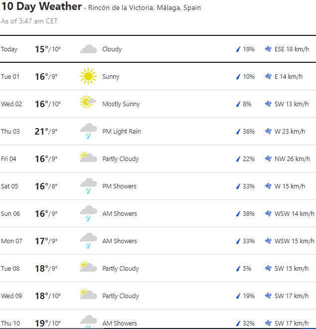 Local Weather: https://www.accuweather.com/en/es/torre-del-mar/306652/weather-forecast/306652