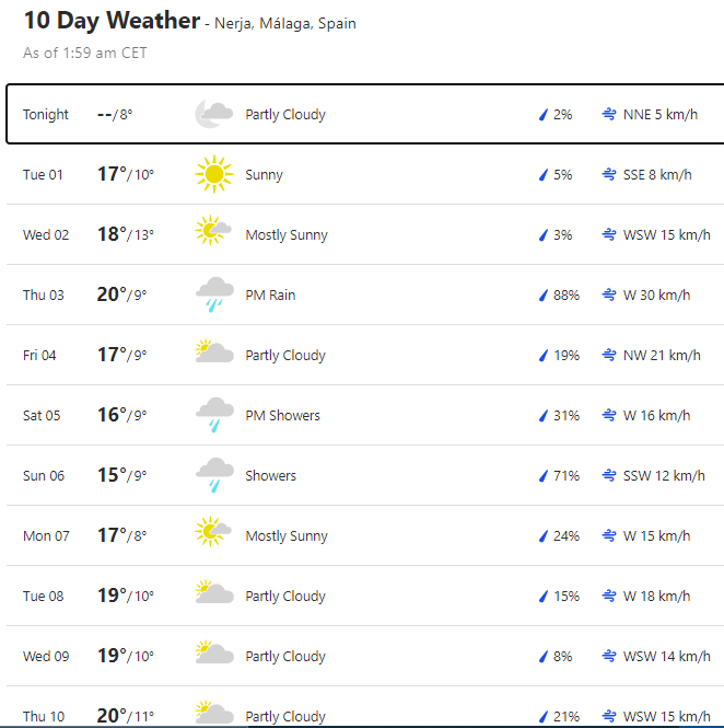 Local Weather: https://www.accuweather.com/en/es/torre-del-mar/306652/weather-forecast/306652