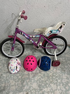 -Kids Bike, suitable for a 3-6 years old, with stabilisers which can be removed. Complete with choice of 3 safety helmets €15