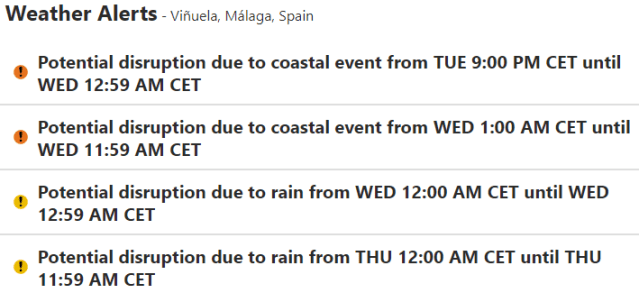 Local Weather: https://www.accuweather.com/en/es/torre-del-mar/306652/weather-forecast/306652