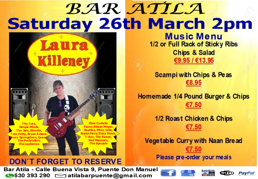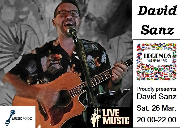 -David Sanz, Live Music Saturday 26 March 20.00 – 22.00. For table booking/Event Food Tex/Mex Combo Plate please pre-book. 951 53 58 71