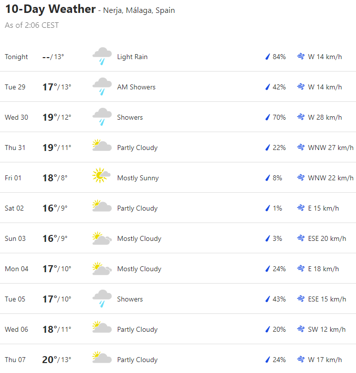 Local Weather: https://www.accuweather.com/en/es/torre-del-mar/306652/weather-forecast/306652