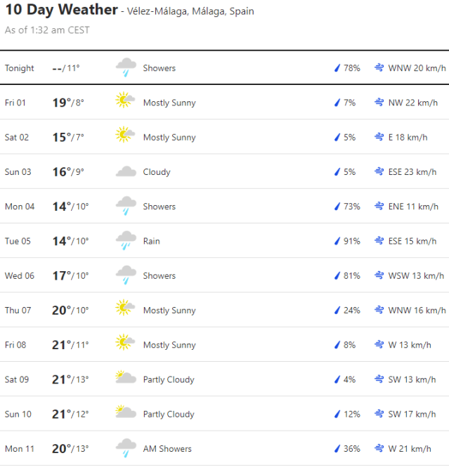Local Weather: https://www.accuweather.com/en/es/torre-del-mar/306652/weather-forecast/306652