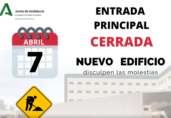 Axarquía Hospital entrance temporarily moved: Due to the works we are carrying out at the Axarquía Hospital, starting next Thursday, April 7, the main entrance to our hospital center will remain CLOSED.