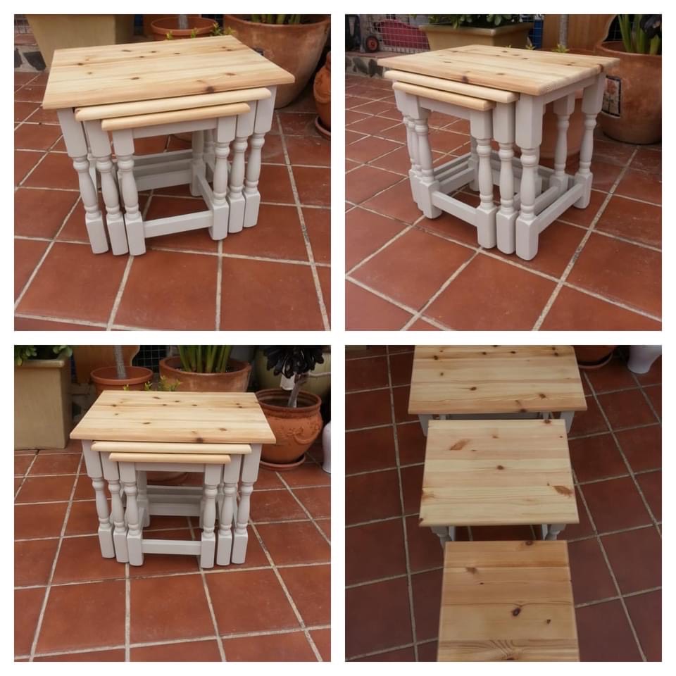 -Preloved nest of tables Natural & yute 54 x 40 x 48cms 42 x 37 x 45cms 32 x 30 x 43cms Price 95€