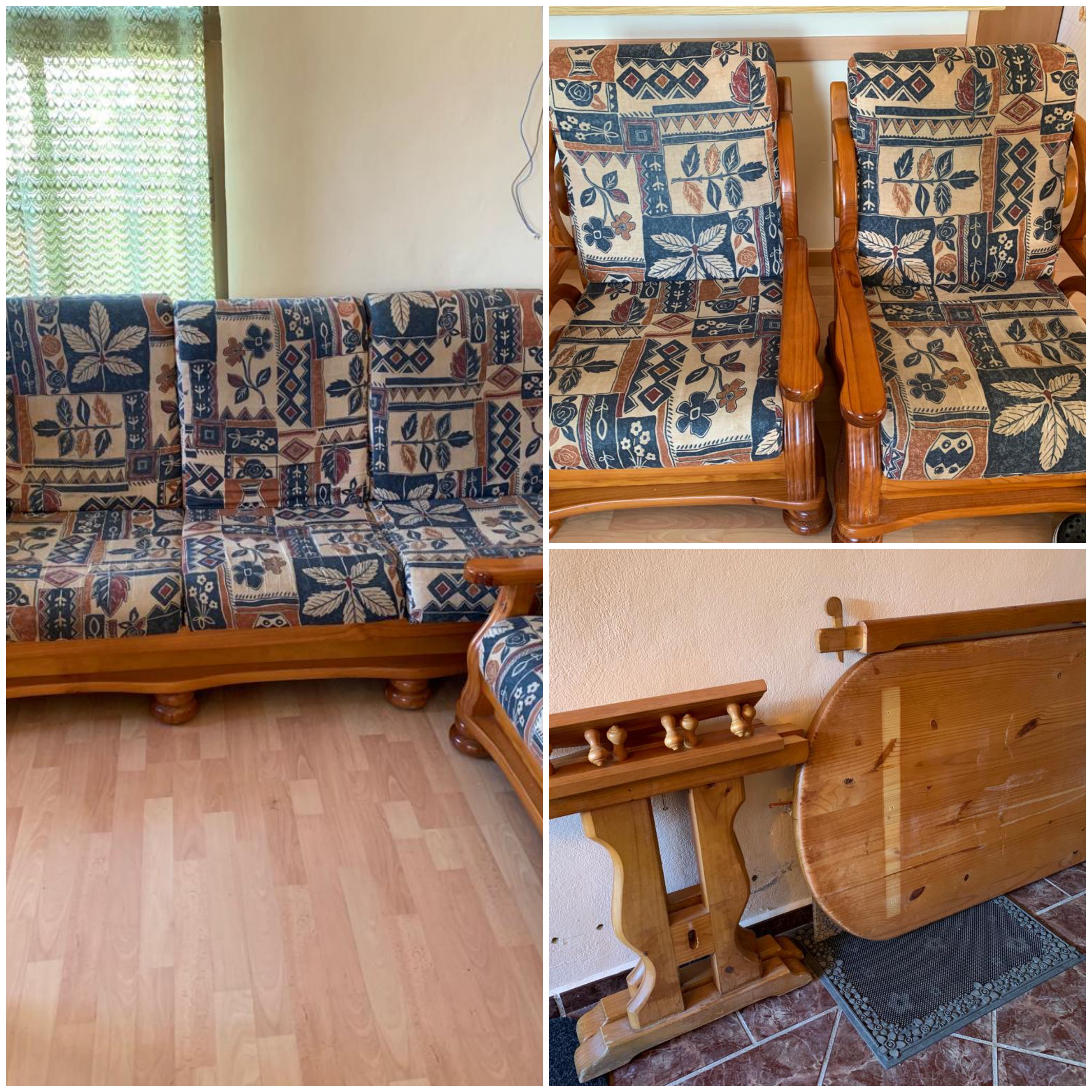 For Sale: 3 seater Sofa and two chairs. Old but in very good condition. €60 ONO. Measurements sofa: 183 cm long, backrest 83 cm high, 71 cm deep