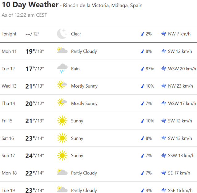 Local Weather: https://www.accuweather.com/en/es/torre-del-mar/306652/weather-forecast/306652