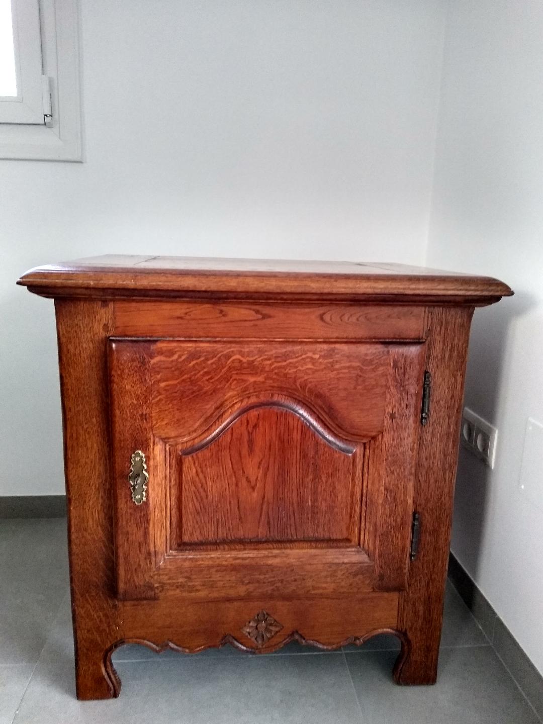 -Solid oak side cupboard with one shelf and lockable door, originally purchased from Muebles Piramides.
