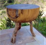-Table. Hand made drum shaped solid wood three legged table/stool, 40cm diameter x 40cm height. 25 euros.