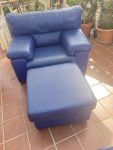 Ocaota good quality real leather sofa very comfy with matching chair and footstool. Measurements sofa 205 x 90cms; chair 120 x 90cms; footstool 67 x 67cms. Price 175€