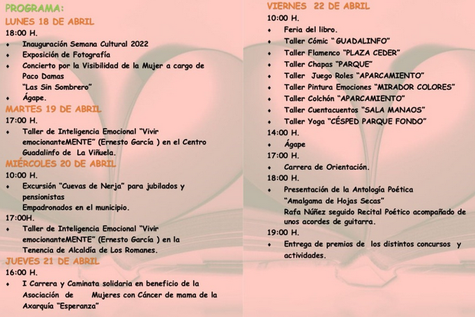 Cultural Week- Viñuela: Monday 18Apr thru Friday 22Apr