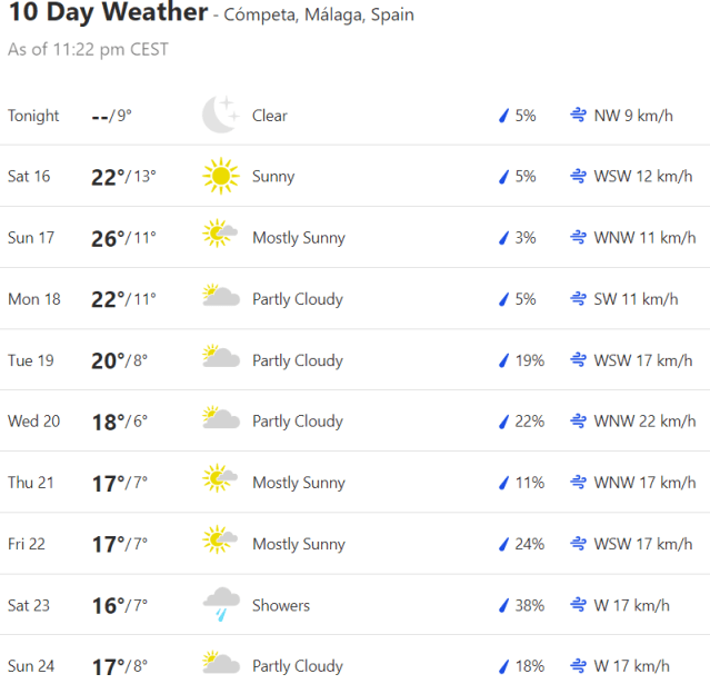 Local Weather: https://www.accuweather.com/en/es/torre-del-mar/306652/weather-forecast/306652