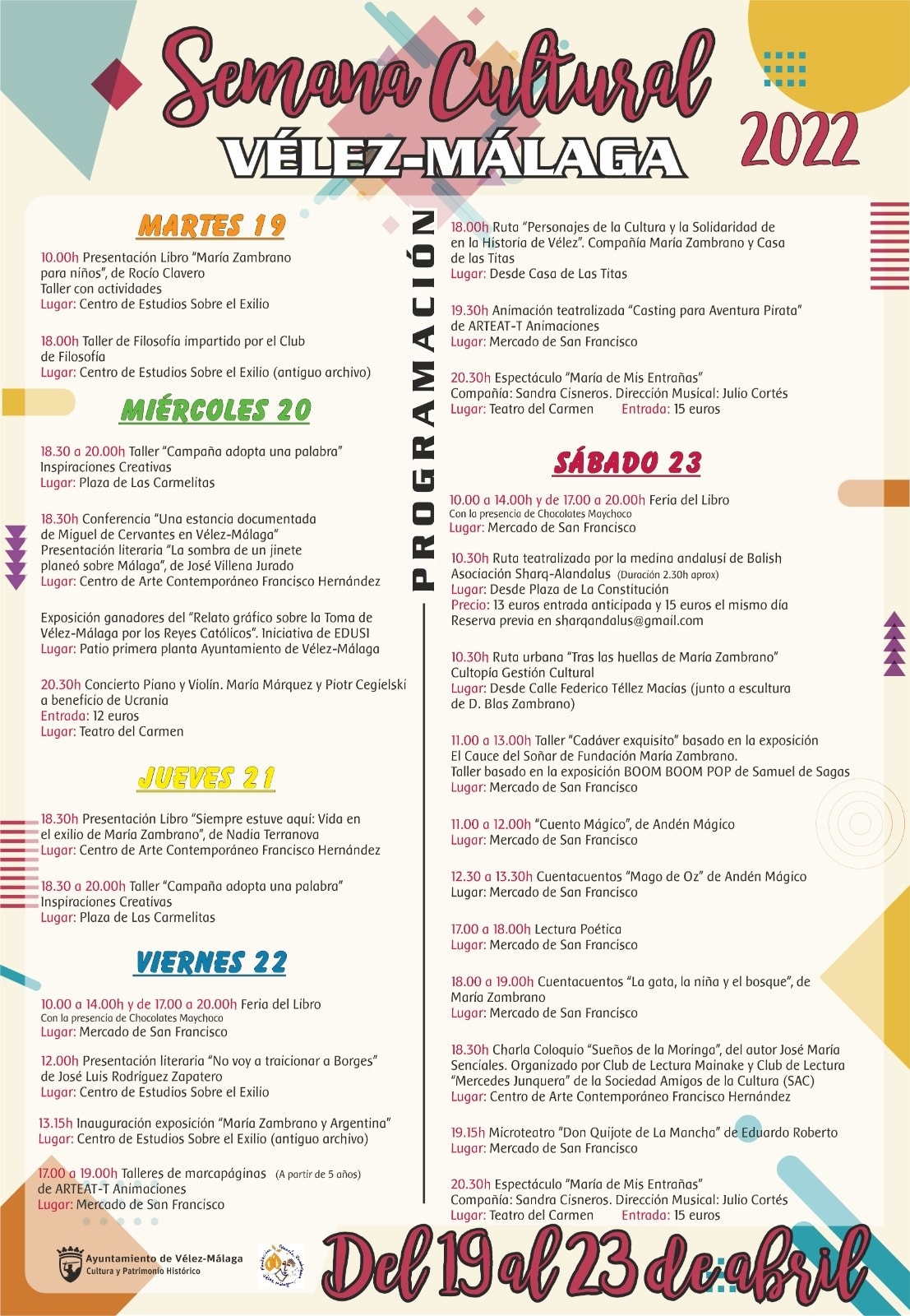 From 19 to 23 April, coinciding with the celebration of the Book Day and the anniversary of the birth of Maria Zambrano. Programming composed of more than twenty activities for all the audiences-