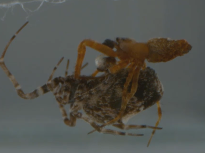 -The larger females proved to be particularly aggressive during the mating process, which often ended in sexual cannibalism. The smaller male spiders who escaped that fate were able to catapult away quickly once mating had concluded. Male spiders produced a dragline anchored to the female’s web during courtship, which remained in place while mating. Once the deed was done and the female spider moved to attack, the male spider pushed himself off the web and catapulted to safety. Full article: https://arstechnica.com/science/2022/04/male-spiders-speedily-catapult-off-their-mates-after-sex-to-avoid-being-eaten/