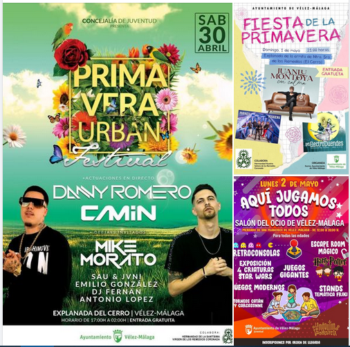 Velez-Malaga celebrates spring this weekend with performances by Danny Romero, Camin, Juanlu Montoya and a Salón de Ocio.