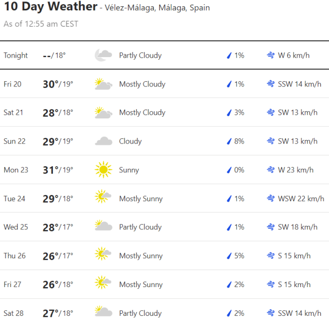 Local Weather: https://www.accuweather.com/en/es/torre-del-mar/306652/weather-forecast/306652
