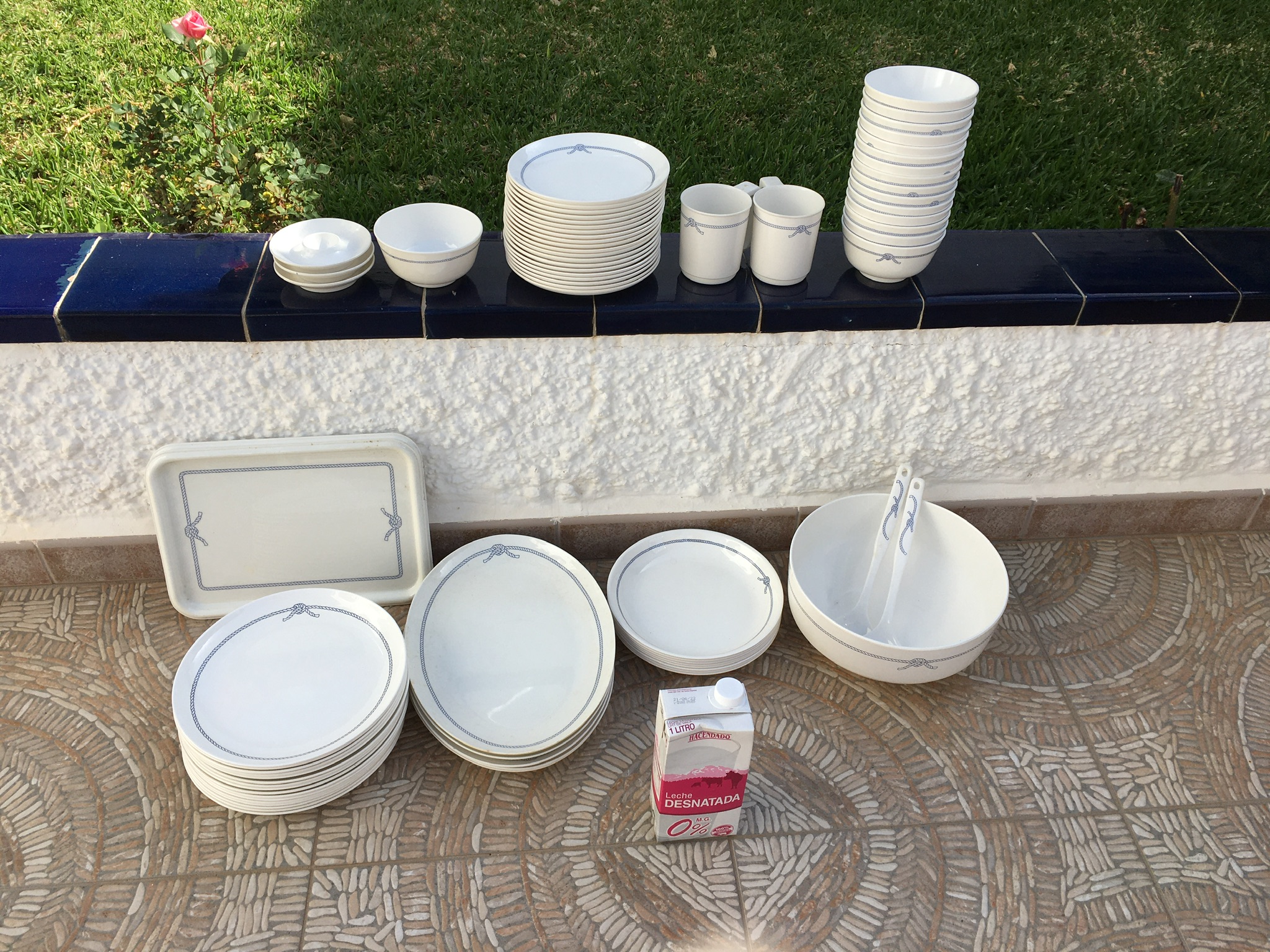 For Sale: Nautical melamine dinnerware, rope design.