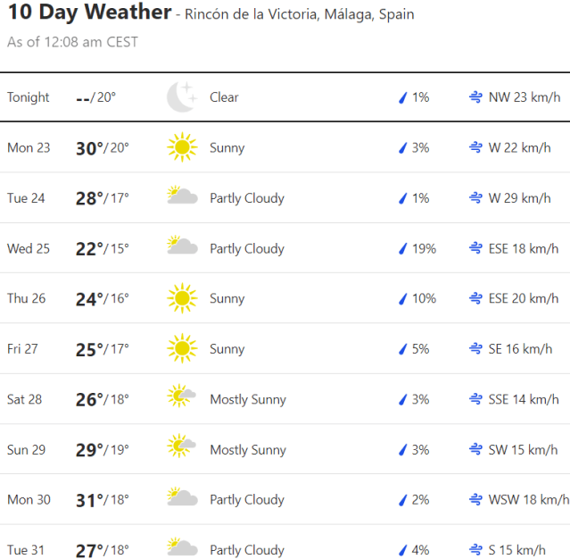Local Weather: https://www.accuweather.com/en/es/torre-del-mar/306652/weather-forecast/306652