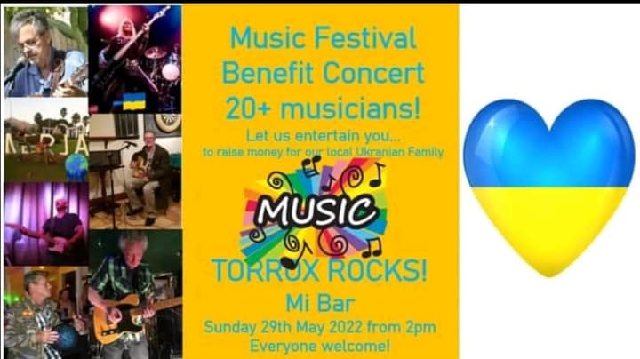 Ukraine Family Benefit Music Festival- Torrox: Sunday 29May, from 2pm. At Mibar, Torrox Pueblo. Music Fest benefit concert with 20+ musicians. To raise money to support our local Ukrainian refugee family. FB