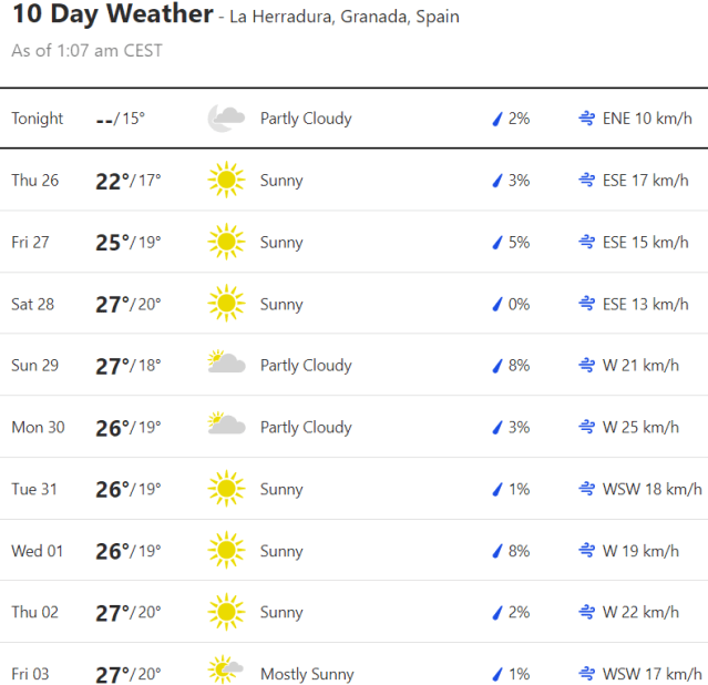 Local Weather: https://www.accuweather.com/en/es/torre-del-mar/306652/weather-forecast/306652