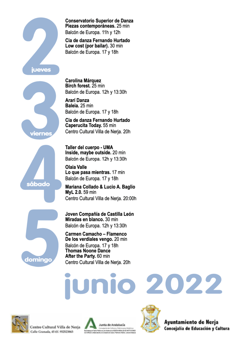 The Balcón de Europa will host the open-air shows, in double sessions in the morning and afternoon, while the Villa de Nerja Cultural Center will be the stage for the indoor shows, where in addition You can see the photographic exhibition “Nerja Dance in memory”. Source, Spanish.