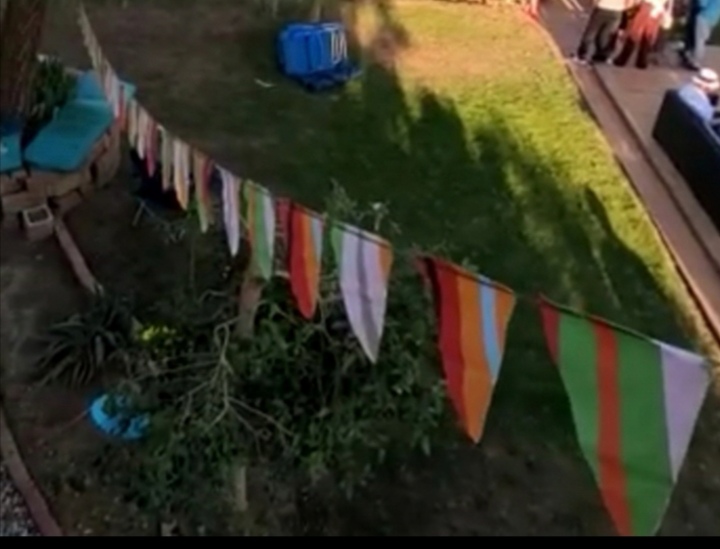 For Sale: About 30 meters of homemade fabric buntings. €10