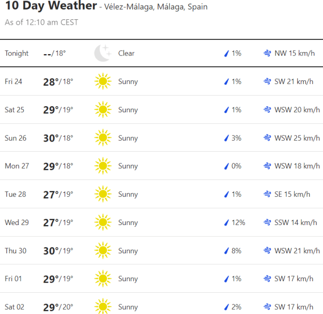 Local Weather: https://www.accuweather.com/en/es/torre-del-mar/306652/weather-forecast/306652