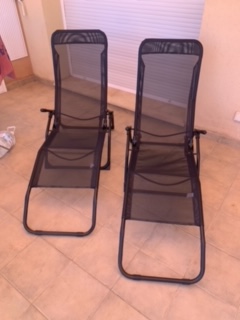 For Sale: 2x Reclining sun loungers. Bought from La Casa 3 months ago. As new. €40 the pair. Barry, Torrox Costa. Collection only.