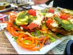 – Have you ever enjoyed the luxury of tasting a freshly homemade pesto sauce? If you like mild sauces, this one may not be for you! But if you delight in a spirited but subtle explosion of garlic, parsley, and pine nuts, then you are in for a treat; you need to try The Bio Beach Restaurant’s delectable one. As wine connoisseurs will describe a vintage wine, I dare affirm that the bouquet of this emerald combination is absolutely irresistible; it’s a must-try! If really hungry, you may opt for the pesto Tallarines del Mar, the main course with fresh and fragrant seafood. Should you prefer a lighter bite, try a delish tapa to be shared with friends by selecting the Tostadas verdes complemented with mozzarella and creamy fresh avocado, resting on a bed of crunchy greens. See the radiant dish attached.