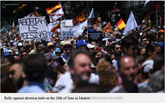 – There were thousands of protestors at an anti-abortion demonstration, encouraged by the US Supreme Court decision this week overturning the 50yr old abortion rights laws. (https://spainsnews.com/the-ultra-catholic-right-protests-in-madrid-against-the-abortion-law-enough-is-enough/)