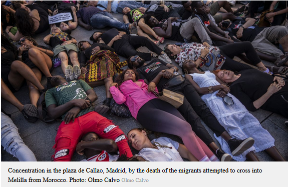– Hundreds of people join demonstration in Madrid against the immigration policies after the deaths of Melilla fence hoppers. (Spanish, https://www.eldiario.es/desalambre/centenares-personas-manifiestan-madrid-politicas-migratorias-muertes-melilla_1_9120145.html)