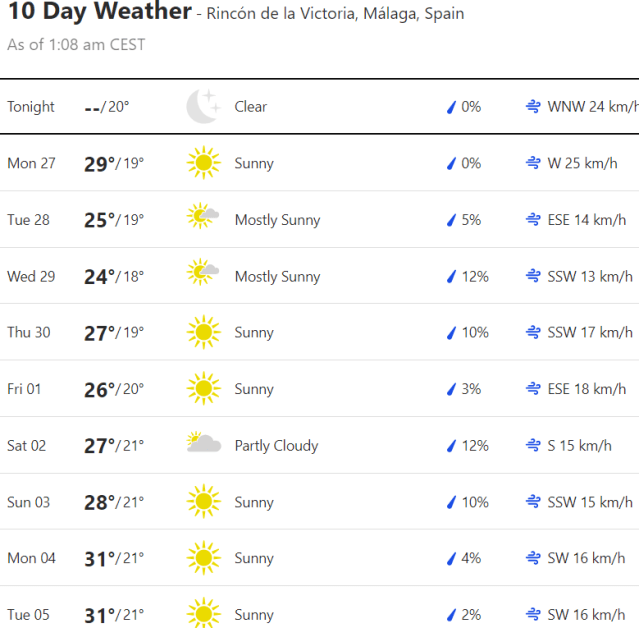 Local Weather: https://www.accuweather.com/en/es/torre-del-mar/306652/weather-forecast/306652