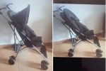 – Folding Pushchair / Stroller. Only used a couple of times. Sloping back, detachable hood (never used) safety straps, brakes, double wheels, black. 35€